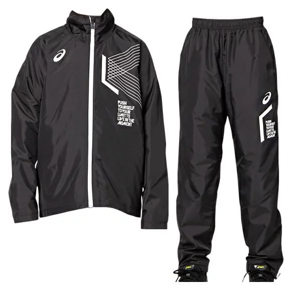 アシックス(asics) ジュニア ウィンドブレーカー上下セット LIMO 裏トリコット 品番:2034A807-2034A808 カラー:001/001(パフォーマンスブラック/パフォーマンスブラック×ブリリアントホワイト) サイズ:130、140、150、160 素材 ジャケット 身頃:タフタ(ポリエステル100%) 裏地:トリコット起毛(ポリエステル100%) 裏中:ヘックスフリース(ポリエステル55%、レーヨン45%) パンツ 身頃:タフタ(ポリエステル100%) 裏地:トリコット起毛(ポリエステル100%) 裏腰:ヘックスフリース(ポリエステル55%、レーヨン45%) 生産国:ベトナム