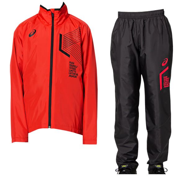 アシックス(asics) ジュニア ウィンドブレーカー上下セット LIMO 裏トリコット 品番:2034A807-2034A808 カラー:601/002(クラシックレッド/パフォーマンスブラック×クラシックレッド) サイズ:130、140、150、160 素材 ジャケット 身頃:タフタ(ポリエステル100%) 裏地:トリコット起毛(ポリエステル100%) 裏中:ヘックスフリース(ポリエステル55%、レーヨン45%) パンツ 身頃:タフタ(ポリエステル100%) 裏地:トリコット起毛(ポリエステル100%) 裏腰:ヘックスフリース(ポリエステル55%、レーヨン45%) 生産国:ベトナム