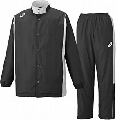 アシックス(asics) バスケットボール ウォームアップ ジャケット・パンツ上下セット 品番:XBT161-XBT261 カラー:ブラック×ミディアムシルバー(9011) サイズ:S、M、L、XL、XXL S:身長162-168 胸囲85-91 ウエスト71-77 M:身長167-173 胸囲89-95 ウエスト75-81 L:身長172-178 胸囲93-99 ウエスト79-85 XL:身長177-183 胸囲97-103 ウエスト83-89 XXL:身長182-188 胸囲101-107 ウエスト87-93