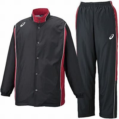 アシックス(asics) バスケットボール ウォームアップ ジャケット・パンツ上下セット 品番:XBT161-XBT261 カラー:ブラック×ストロングレッド(9024) サイズ:S、M、L、XL、XXL S:身長162-168 胸囲85-91 ウエスト71-77 M:身長167-173 胸囲89-95 ウエスト75-81 L:身長172-178 胸囲93-99 ウエスト79-85 XL:身長177-183 胸囲97-103 ウエスト83-89 XXL:身長182-188 胸囲101-107 ウエスト87-93