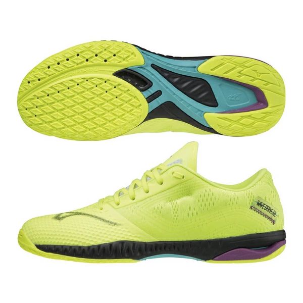 ミズノ(MIZUNO) 卓球シューズ ウエーブドライブ EL 品番:81GA200145 カラー:45:イエロー×ブラック×パープル サイズ:23.0~28.5cm 素材 甲材:合成皮革・合成繊維 底材:合成底 インソール:マイルドクッションインソール(取り外し可) 質量:約225g(26.0cm片方) ウィズ:2E相当の方向け 生産国:ベトナム