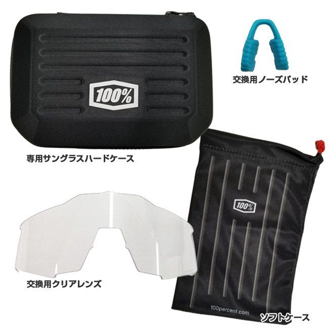 100%(ワンハンドレッド)サングラス SPEEDCRAFT 品番:61001-22801 フレームカラー:Matte Metallic Into the Fade レンズ:Blue Topaz 保護ハードケース マイクロファイバーバッグ スペアクリアレンズ ノーズパッド 機能・特徴 ・厚さ1.6mmの明瞭度に優れたシリンダーカットレンズを採用(レンズカーブ:5.5) ・広い視野を確保し優れた保護性能を持つシールドレンズ ・100%UVカット ・レンズ内面:反射防止コーティング ・レンズ内側:耐油・耐水に優れたハイドロレオフォビックコーティング ・テンプルラバーやノーズラバーにはグリップに優れ非アレルギー性のMegol製ゴムを採用 ・くもり防止のため、レンズ下部にエアスクープを採用 ・付属品として、ハードケース/マイクロファイバーバッグ/スペアクリアレンズ/ノーズパッド