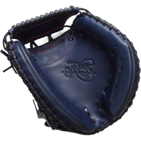 ハタケヤマ(HATAKEYAMA) 軟式野球用 キャッチャーミット 品番:PRO-M62 カラー:ネイビー×グレー(H) 素材 表革:北米ステアハイド 裏革:北米ステアハイド ポジション:捕手用 左右:右投用 基本モデル:M62型 甲斐モデル シリコンラベル 日本製