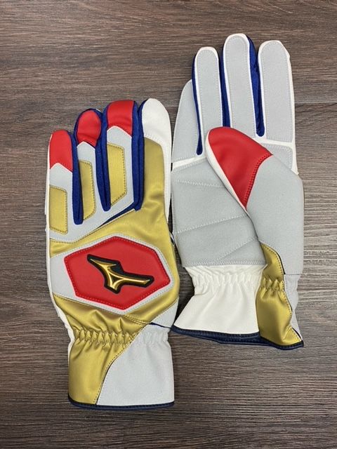 ミズノ(MIZUNO) ミズノプロ 走塁用手袋 両手用 カラー:ゴールド×レッド×ネイビー(SKO-005) サイズ:M(24〜25cm)、L(26〜27cm) 素材 掌部:人工皮革 甲部:人工皮革、合成皮革、ナイロン、ポリエステル、ポリウレタン