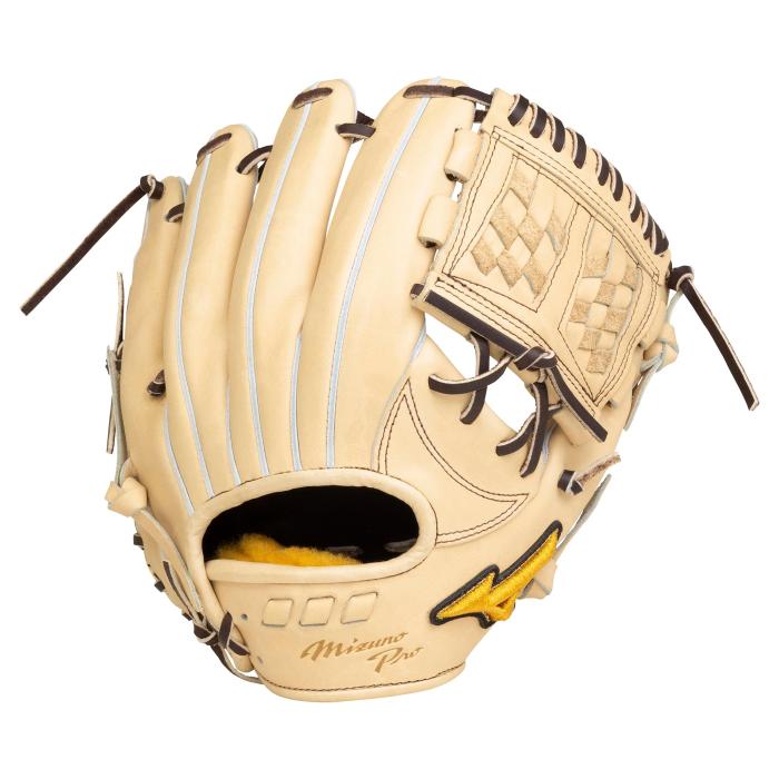 品番:1AJGH26203 カラー:80(ブロンド) 素材:ジェネラルキップレザー(天然皮革:牛革) サイズ:9 ポジション:内野手用(ウェブ下ポケット浅め) 左右:右投用 付属品:BSSショップ限定専用袋付(中国製) 生産国:中国製