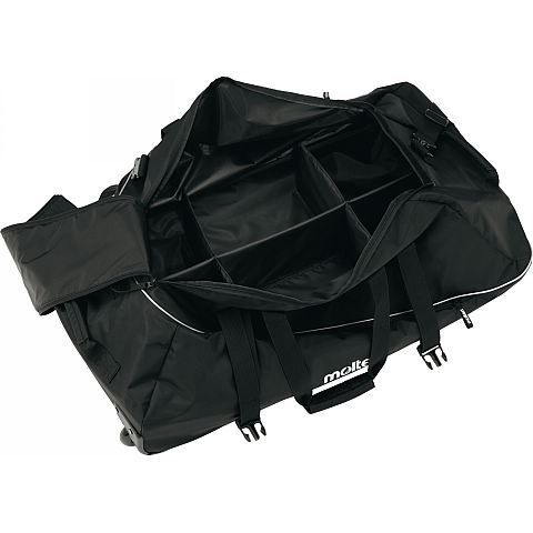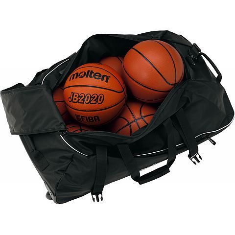 モルテン(molten)ホイールバッグ 品番:EK0018 カラー:ブラック 素材 : ナイロン サイズ:幅80×高さ50×奥行42.5cm 仕切り板付き ボールの入り数(目安):バスケット(7号)8個、サッカー(5号)10個、バレー(5号)10個、ハンド(3号)12個 生産:中国製