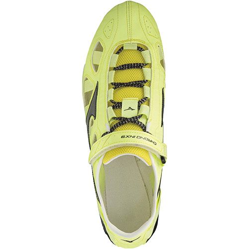 ミズノ(MIZUNO) 陸上スパイク 短・中距離用 クロノインクス9 品番:U1GA210081 カラー:81:ライム×グレー×ブラック サイズ:22.0~29.0cm 素材 甲材:人工皮革、合成繊維 底材:合成底 質量:約150g(27.0cm片方) シューズ幅:2E相当の方向け スパイクピン/固定式(7mm・3mm) 本製品はシューズ袋が付きません。 原産国:日本製