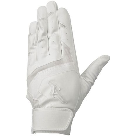 ミズノ(MIZUNO) バッティング手袋 両手用 ガチグラブHS 品番:1EJEH15510 カラー:ホワイト×ホワイト(01) サイズ:S(22~23cm)、M(24~25cm)、L(26~27cm)、LL(28~29cm) 素材:掌部/人工皮革(シリコン加工)、甲部/合成皮革、ナイロン、ポリエステル 掌シリコン加工 機能・特徴 3Dカット 単独水洗い可 ガチ専用掌素材「ガチスエード」 ガチ専用掌構造「ガチパーム」 原産国:インドネシア製