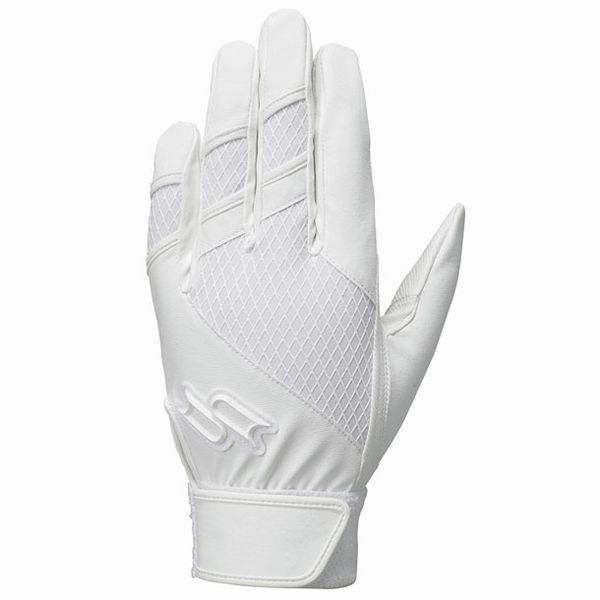 エスエスケイ(SSK) プロエッジ バッティング手袋 両手用 品番:EBG3003W カラー:ホワイト(10) サイズ:S(22-23cm)、M(24-25cm)、L(26-27cm) 素材:合成皮革、合成繊維 高校野球対応 水洗い可能 生産国:バングラデシュ製