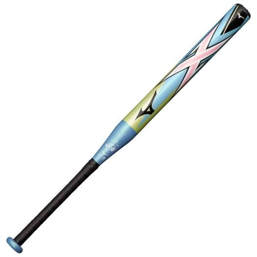 ミズノ(MIZUNO) ソフトボール用バット 1・2号 ゴムボール用 エックス 品番:1CJFS62078 カラー:4021:ライム×スカイブルー サイズ 長さ:78cm 質量:平均560g 最大径/平均Φ50mm 素材:カーボン+グラス+特殊フィルム グリップテープ:2ZT250 バランス:トップバランス 専用バットケース付き 原産国:中国製