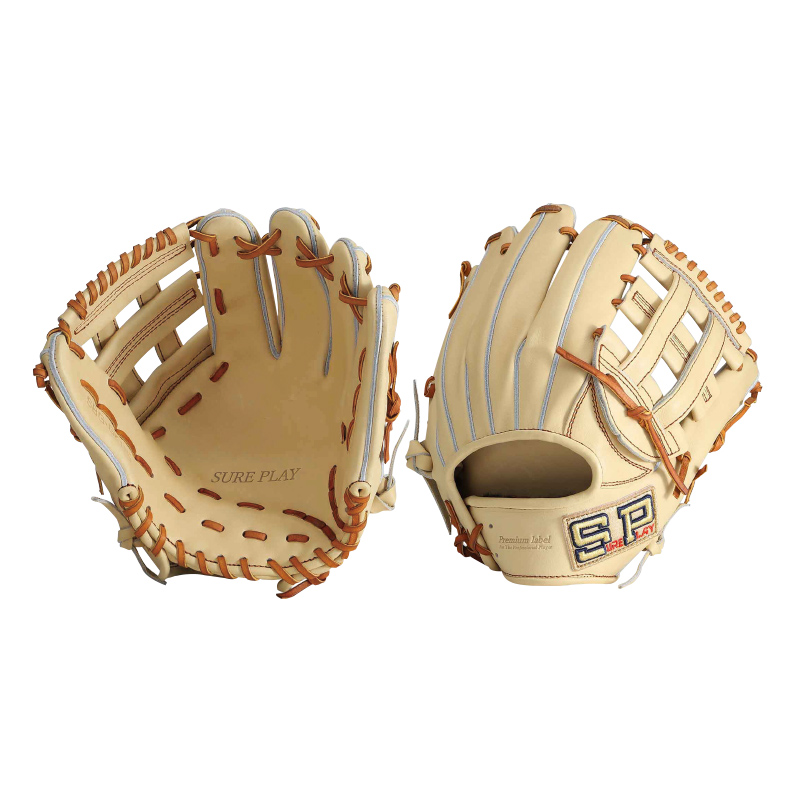 シュアプレイ(SURE PLAY) 硬式グラブ 品番:SBG-GK115 カラー:CM(キャメル) 素材:天然皮革(ヨーロピアンキップ) ポジション:三塁手用(右投用) 詳細:指カバー付 、順巻き 付属品:グラブ袋 生産国:日本