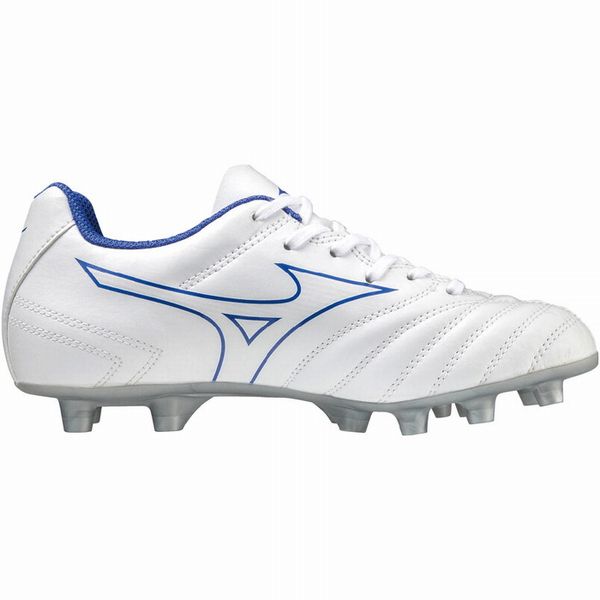 ミズノ(MIZUNO) ジュニア サッカースパイク モナルシーダ NEO 2 SELECT Jr 品番:P1GB222525 カラー:25:ホワイト×ブルー サイズ:19.0~24.0cm 素材 アッパー:人工皮革 アウトソール:合成底 重量:約160g(22.0cm片方) 対応グラウンド:天然芝グラウンド、土グラウンド、人工芝グラウンド 原産国:カンボジア製