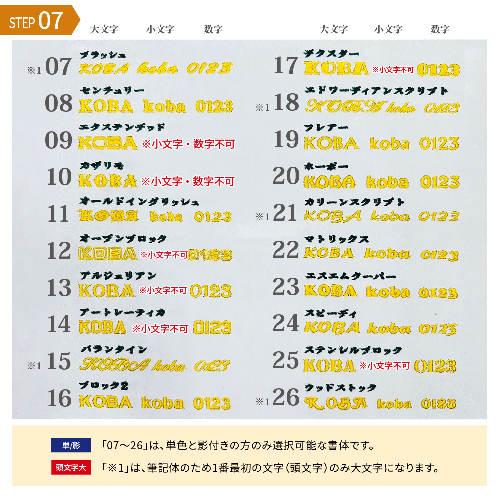 【※注意2※文字】刺繍文字の大きさは、こちらで決めさせていただきます。(指定される場合別途料金がかかりますので、お手数ですがメールやTEL等でお問い合わせください)