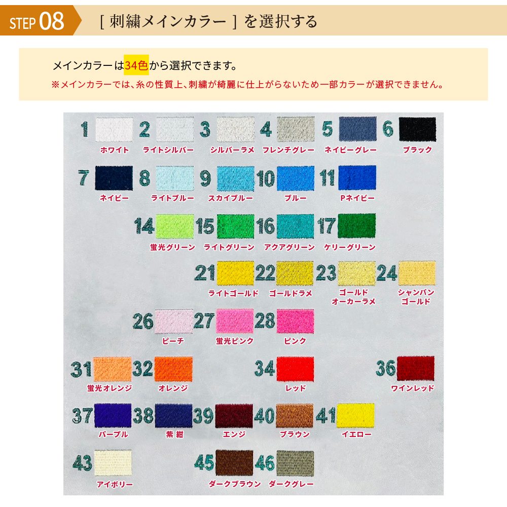 【※注意5※カラー】メインカラーに、一部刺繍糸がお選びいただけませんのでご了承くださいませ。