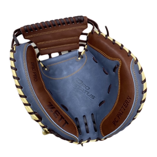 ゼット(ZETT) プロステイタス 軟式オーダーキャッチャーミット スポコバオリジナル BPCPRO 252型 モデル:252型 品番:BPCPRO カラー 本体:ダークグレー ツートンカラー:ダークグレー×チョコブラウン 平裏:本体同素材/ステア(チョコブラウン) ヘリ革:パステルブラウン ステッチ:ライトゴールド バンド裏ムートン:ムートンなし 指あて:パステルブラウン 紐革:ブラウン 素材:(表)プロステイタスレザー (平裏)ステア ラベル:プロステイタス(金糸) 内芯:(硬さ)普通 (厚さ)普通 手口紐通逆巻き ターゲット加工:チョコブラウン ポジション:捕手用 左右:右投用 付属品:専用グラブ袋付き 原産国:日本製