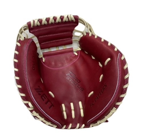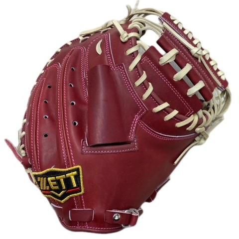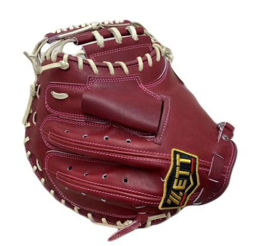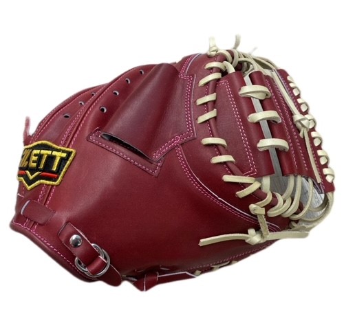 モデル:242型 読売ジャイアンツ 小林モデル 品番:BPCPRO カラー 本体:ボルドーブラウン 平裏:ブラック ヘリ革:ボルドーブラウン ステッチ:ピンク バンド裏ムートン:ムートンなし 紐革:パステルブラウン 素材:(表)プロステイタスレザー (平裏)デーステア ラベル:プロステイタス(金糸) 内芯:(硬さ)普通 (厚さ)普通 手口紐通逆巻き ポジション:捕手用 左右:右投用 付属品:専用グラブ袋付き 原産国:日本製