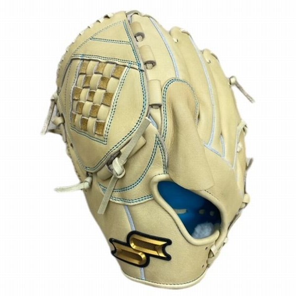 エスエスケイ(SSK) プロエッジ 硬式 オーダーグラブ スポコバオリジナル 品番:PEO512GK カラー 本体:キャメル 平裏:サックス ヘリ革:キャメル ステッチ:サックス バンド裏ムートン:ホワイト 紐革:キャメル モデル:512型 グラブレングス:7S ウェブ:ハオドウェブ バックスタイル:フリーフレクション パッド形態:ツーウェイパッド ロゴマーク:ブロンズゴールド パッド芯:硬め レギュラー巻き ポジション:投手用 左右:左投用 付属品:専用グラブ袋付き 原産国:中国