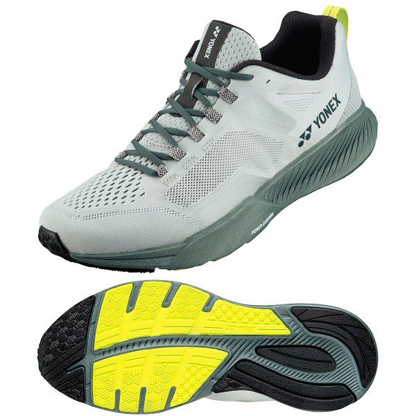 ヨネックス(YONEX) ランニングシューズ セーフランフィットジョグ メン 品番:SHRFJ1M カラー:ライトオリーブ(324) サイズ:24.5~29.0cm 素材 アッパー:合成繊維 ミッドソール:合成樹脂 アウトソール:ゴム底 重量:片足230g(26.0cm) 機能 パワークッションプラス 軽量性を保ちながら反発性の高い特殊樹脂を添加し、 格子状に+型の溝を配置。これまでの性能を上回る 衝撃吸収性と反発性を実現。 エンジニアードメッシュ リサイクルポリエステル100%で環境にも足にも優しい エンジニアードメッシュを採用。 ラテラルシェル アッパーに圧着した高強度フィルム。踏ん張った際の パワーロスや横ブレを抑え、安定性・サポート性を向上。 ワイドコンタクト設計 横幅を広げ、接地面積を増やすことで、足がブレにくく、 高い走行安定性を生む。 フェザーライトエックス YONEX最軽量ミッドソール素材。軽やかな動きを実現。 生産国:ベトナム