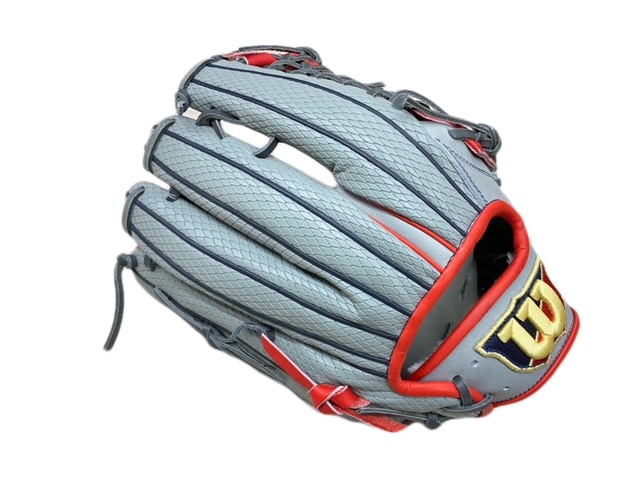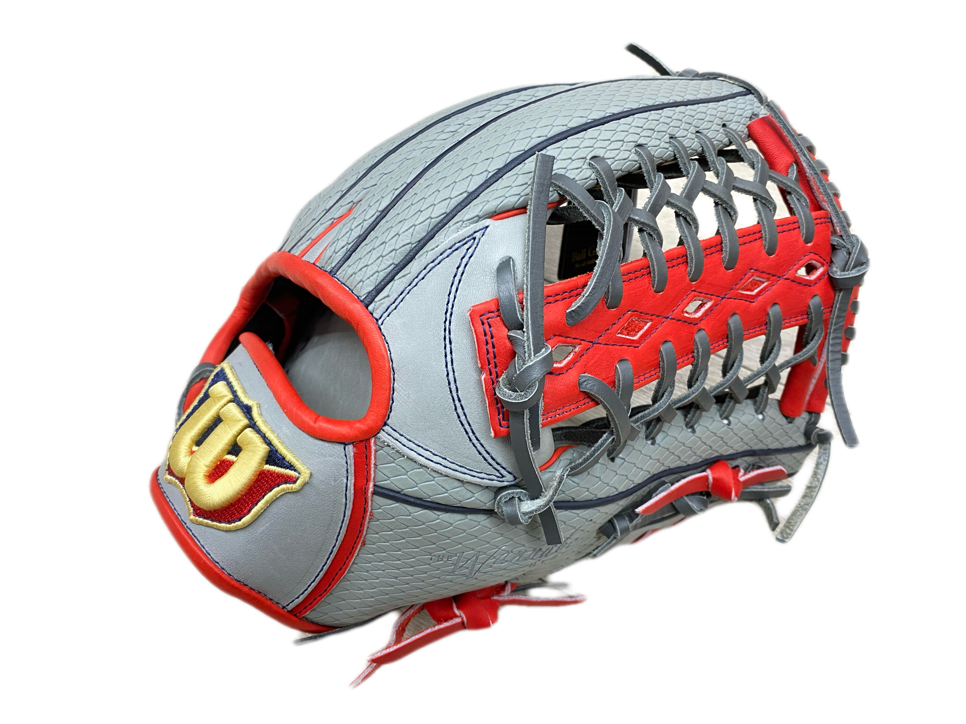 ウィルソン(Wilson)軟式用グラブ 外野手用 ワナビーヒーロー DUAL 品番:WBW100638 カラー:グレー×グレースーパースネークスキン(GR/GSN) 素材 表革:ベーシックレザーRG+スーパースネークスキン 裏革:ベーシックレザーRG ポジション:外野手用 サイズ:12.5 左右:右投用 機能・特徴 特徴 DUALテクノロジー ハミダシ2本構造の立体縫製により、打球の威力に負けない指先の強さと高いフィット感を実現。 スーパースキン 牛革の1/2の軽さで約2倍の耐久性を持つウィルソン独自素材。 雨(水分)、汚れが浸透しないため重くなりにくく、お手入れも簡単。 ベトナム製