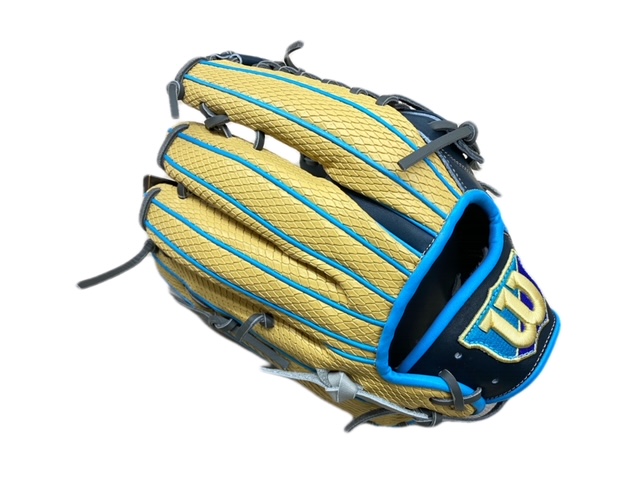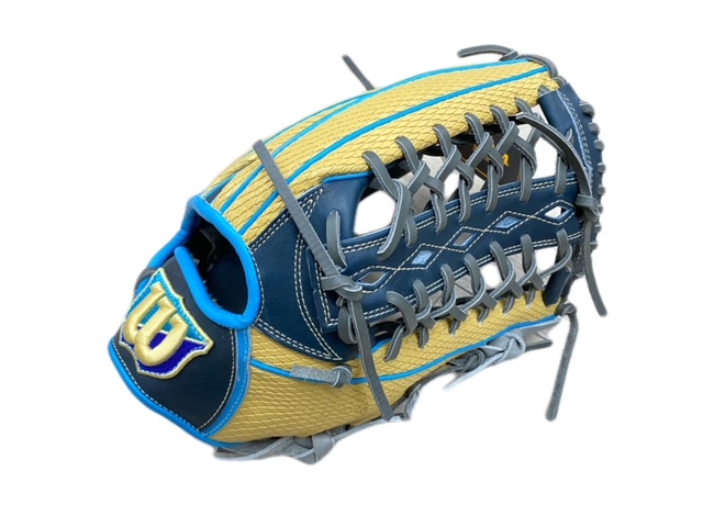 ウィルソン(Wilson)軟式用グラブ 外野手用 ワナビーヒーロー DUAL 品番:WBW100642 カラー:ネイビー×ブロンドスーパースネークスキン(NA/LSN) 素材 表革:ベーシックレザーRG+スーパースネークスキン 裏革:ベーシックレザーRG ポジション:外野手用 サイズ:12.5 左右:右投用 機能・特徴 特徴 DUALテクノロジー ハミダシ2本構造の立体縫製により、打球の威力に負けない指先の強さと高いフィット感を実現。 スーパースキン 牛革の1/2の軽さで約2倍の耐久性を持つウィルソン独自素材。 雨(水分)、汚れが浸透しないため重くなりにくく、お手入れも簡単。 ベトナム製