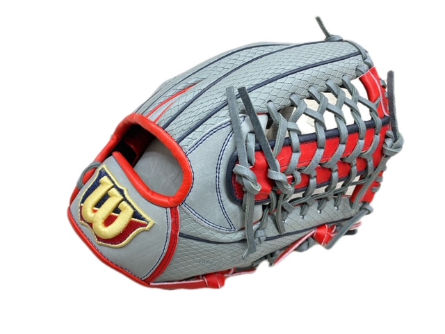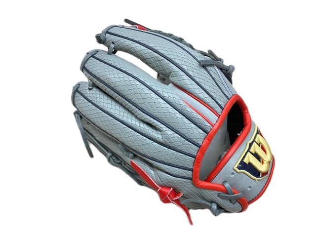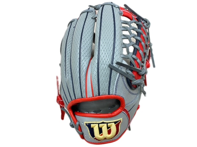 ウィルソン(Wilson)軟式用グラブ ユーティリティ用 ワナビーヒーロー DUAL 品番:WBW100646 カラー:グレー×グレースーパースネークスキン(GR/GSN) 素材 表革:ベーシックレザーRG+スーパースネークスキン 裏革:ベーシックレザーRG ポジション:ユーティリティ用 サイズ:12 左右:右投用 機能・特徴 特徴 DUALテクノロジー ハミダシ2本構造の立体縫製により、打球の威力に負けない指先の強さと高いフィット感を実現。 スーパースキン 牛革の1/2の軽さで約2倍の耐久性を持つウィルソン独自素材。 雨(水分)、汚れが浸透しないため重くなりにくく、お手入れも簡単。 ベトナム製