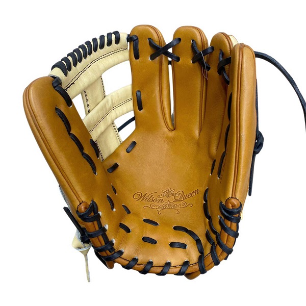 ウィルソン(Wilson)女子ソフトボール用グラブ Queen DAUL 品番:WBW100694 カラー:SQVD5T(Sタン×ブロンド) ポジション:内野手用(右投用) サイズ:11.5 表革:プロストックレザーSG 裏革:ライニングレザーSG 特別仕様:小指2本入れ対応 機能:アーチフィッター、バンドフィット調節、親指フィット構造、フラットバインディング 製造国:ベトナム製