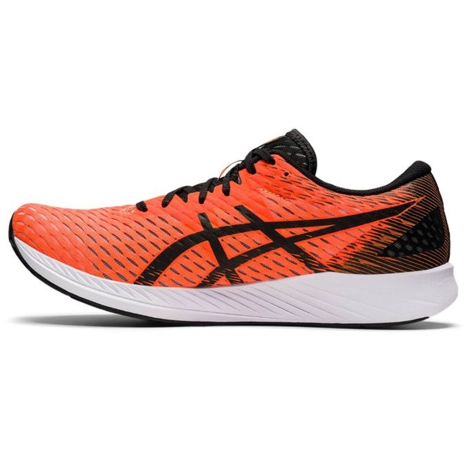アシックス(asics) ランニングシューズ ハイパー スピード ワイド 品番:1011B394 カラー:オレンジ×ブラック(801) サイズ:25.0~28.5cm 素材 アッパー:合成繊維・合成樹脂 アウターソール:ゴム底 インナーソール:合成樹脂(FLYTEFOAM) 足幅:3E 片足重量:約210g(27.0cm) 生産国:ベトナム