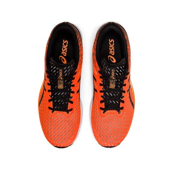 アシックス asics ランニング シューズ HYPER SPEED ハイパースピード 品番:1011B025 カラー:ショッキングオレンジ/ブラック(801) サイズ:24.5~29.0cm 幅/ラスト:STANDARD アッパー素材:合成繊維・合成樹脂 アウターソール:ゴム底 インナーソール:合成樹脂(FLYTEFOAM)/固定式 生産国:ベトナム