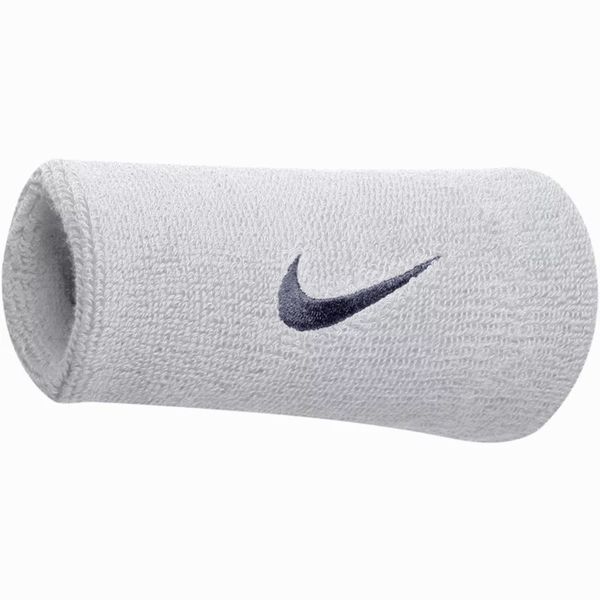 ナイキ(NIKE) スウッシュ ダブル ワイド リストバンド 2個入り 両手 品番:NNN05 カラー:ホワイト/オブシディアン(116) サイズ:フリーサイズ 長さ約13センチ 素材:綿・ナイロン・その他 生産国:タイ
