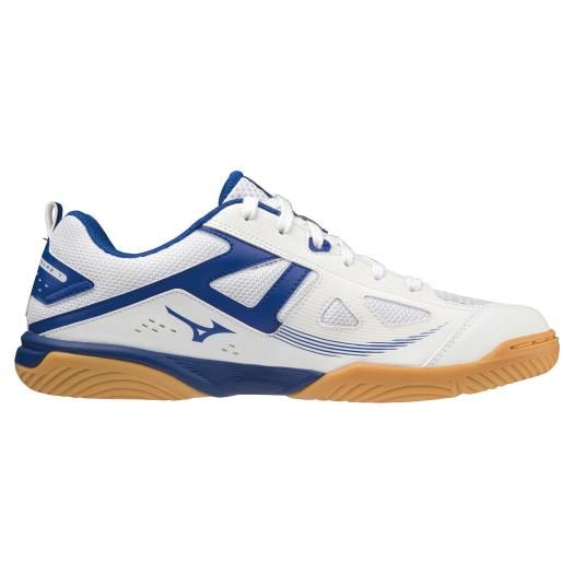 ミズノ(MIZUNO) 卓球シューズ ウエーブカイザーブルク7 品番:81GA222027 カラー:27:ホワイト×ブルー サイズ:23.0~28.5cm 素材 甲材:人工皮革、合成繊維 底材:合成底 質量:約240g(26.0cm片方) インソール:カップインソール(取り外し可) シューズ幅:3E相当の方向け 原産国:ベトナム製
