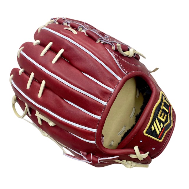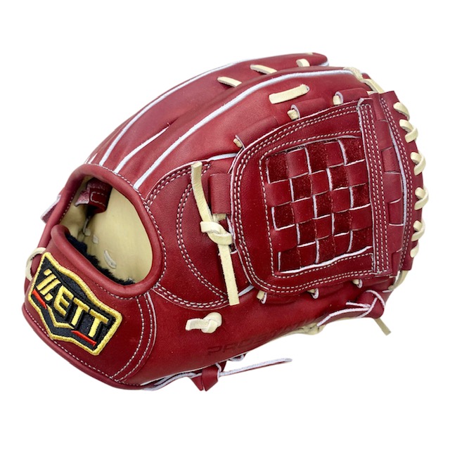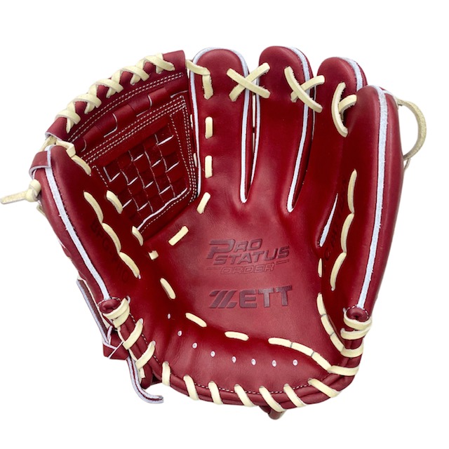 ゼット(ZETT) プロステイタス 硬式オーダーグラブ スポコバオリジナル 品番:BPGPRO カラー:ボルドーブラウン 素材:(表)プロステイタスレザー、(平裏)デーステア サイズ:4 ウェブ:ジョイントチェッカー 内芯:Dブーメラン紐抜き 内芯硬さ:硬く 内芯暑さ:普通 ステッチカラー:ライトシルバー 革紐カラー:パステルブラウン ハミダシ:トコ/ホワイト ヘリ革:ボルドーブラウン ラベル:プロステイタス(金糸) バンド裏ムートン:ブラック黒 モデル:源田壮亮(西武ライオンズ)モデル 226型 タイプ:小指2本入れ使用可 ポジション:内野手用 左右:右投用 付属品:専用袋付き 原産国:日本製