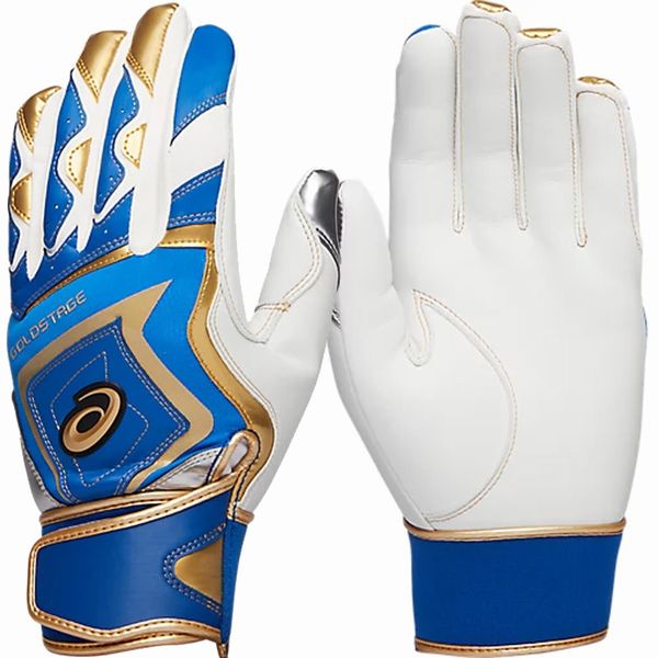 アシックス(asics) GOLDSTAGE バッティング手袋 両手用 品番:3121A953 カラー:ロイヤル×ゴールド(407) サイズ:S(22-23cm)、M(24-25cm)、L(26-27cm) 素材 天然皮革(シープ) 合成皮革、ナイロン 機能・特徴 立体構造当て革補強 ウォッシャブル 生産国:インドネシア