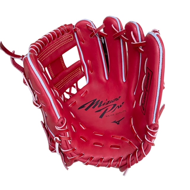 ミズノ(MIZUNO)ミズノプロ 軟式グラブ BSSショップ限定 CRAFTED EDITION 限定モデル 品番:1AJGR97003 カラー:62X(レッドX) 素材:受球面・背面:ギンジョウエリートR(天然皮革:牛革) サイズ:9 ポジション:内野手用(シモンズ型) 左右:右投用 付属品:BSSショップ限定専用袋付(中国製) 原産国:中国