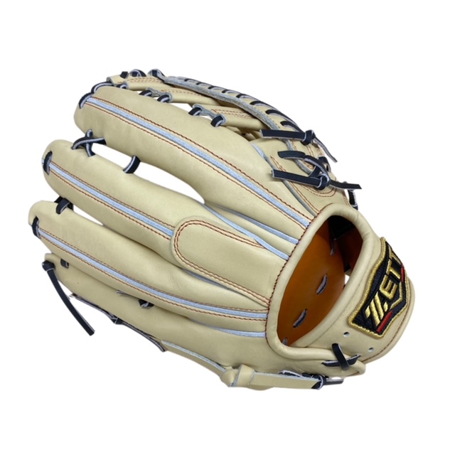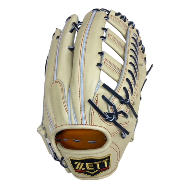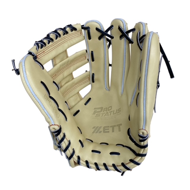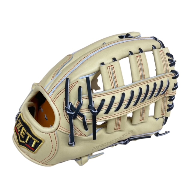 ゼット(ZETT) プロステイタス 硬式オーダーグラブ スポコバオリジナル 品番:BPGPRO カラー:パステルブラウン 素材:(表)プロステイタスレザー、(平裏)キップ サイズ:9 ウェブ:レーシング2段ベルト? 内芯:Dブーメランコアパッド 内芯硬さ:硬く 内芯暑さ:普通 ステッチカラー:オレンジ 革紐カラー:ブラック(芯通しなし) ハミダシ:トコ/ホワイト ヘリ革:パステルブラウン ラベル:プロステイタス(金糸) バンド裏ムートン:ムートンなし モデル:117型 タイプ:小指2本入れ設計 ポジション:外野手用 左右:右投用 付属品:専用袋付き 原産国:日本製