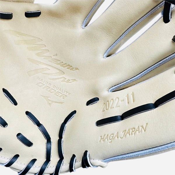 ミズノ(MIZUNO) BSSショップ限定 ミズノプロ 硬式グラブ スポコバオリジナル 品番:1AJGH88250 カラー:ブロンド(80) 素材:プレキシーキップレザー(天然皮革:牛革) サイズ:11(基本モデル〜5mm大) 指カバー ウェブ:タータンMIE バックスタイル:コネクトバック ステッチカラー:オレンジ(7) 革紐カラー:ブロンド(80) ロゴ:ゴールド モデル:石川 雅規(東京ヤクルトモデル) ポジション:投手用 左右:左投用 付属品:専用袋付き 原産国:日本製