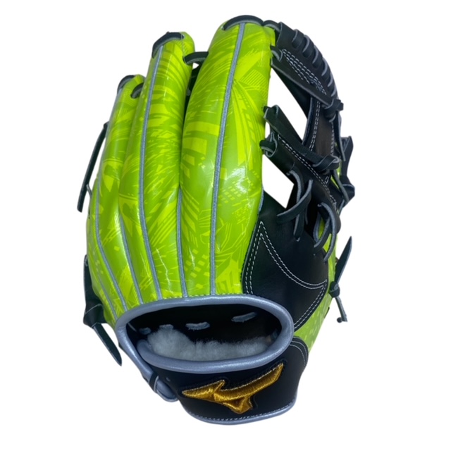 ミズノ(MIZUNO)ミズノプロ 軟式グラブ NEOLIME BSSショップ限定オールスターモデル 品番:1AJGR27103 カラー:0940(ブラック/ナチュラルライム) 素材:受球面・背面:クレストハイド(天然皮革:牛革) サイズ:9 ポジション:内野手用 左右:右投用 特徴:アイテム共通で人々の多様性を認め合い、尊重するダイバーシティグラフィックを採用 付属品:BSSショップ限定専用袋付(中国製) 原産国:中国