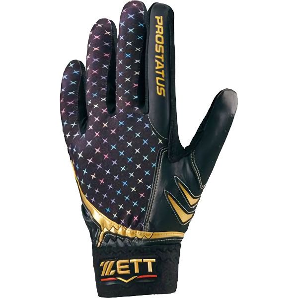 ゼット(ZETT) プロステイタス 守備用手袋 左手用 品番:BG298AS カラー:ブラック×ゴールド(1982) サイズ:S(22-23cm)、M(24-25cm)、L(26-27cm) 素材 甲材:合成皮革 掌側:合成皮革 機能・特徴 シリコン滑り止め加工(中指~小指) ウォッシャブル 原産国:ベトナム