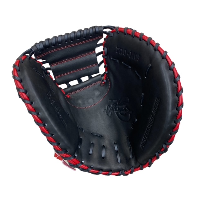 ハタケヤマ(HATAKEYAMA) ソフトボール用 キャッチャーミット 品番:PRO-M03 カラー:ブラック×レッド(J) 素材 表革:北米ステアハイド 裏革:共牛革 ポジション:キャッチャーミット 機能・特徴 ピンキーパターン 小指ヘリ革部分の新機能。 ヘリ革部分を伸ばしスリットを入れることにより耐久性アップ。 また紐を緩めることにより手入れ部分の調整も可能になりました。 シェラームーブ キャッチャーミットの甲の蛇腹状のデザインは、キャッチャーミットならではの「掴む」動きを円滑にするための形。 甲殻類の滑らかで力強い動きを参考に生まれました。
