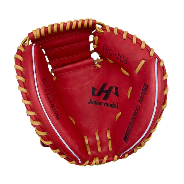 ハタケヤマ(HATAKEYAMA) 少年軟式用キャッチャーミット 品番:PRO-JC8 カラー:レッド(E) 素材 表革:北米ステアハイド 裏革:共牛革 左右:右投げ ポジション:捕手用 シェラームーブ 基本モデル:JL8型 台湾製