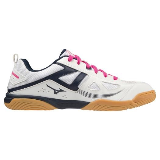 ミズノ(MIZUNO) 卓球シューズ ウエーブカイザーブルク7 品番:81GA222064 カラー:64:ホワイト×ピンク×ネイビー サイズ:22.5~25.0cm 素材 甲材:人工皮革、合成繊維 底材:合成底 質量:約240g(26.0cm片方) インソール:カップインソール(取り外し可) シューズ幅:3E相当の方向け 原産国:ベトナム製