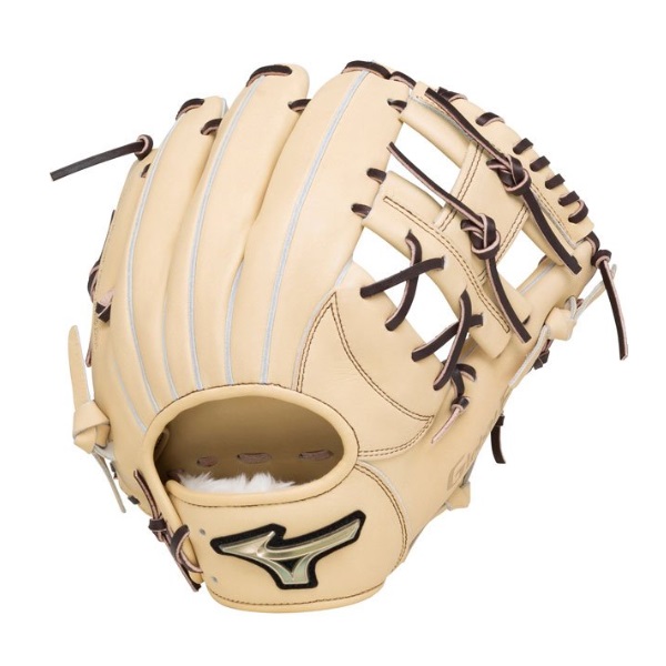 ミズノ(MIZUNO) グローバルエリート 軟式グラブ 限定モデル Hselection SIGNA 品番:1AJGR27403 カラー:80(ブロンド) 素材:マデレンダーレザーR(天然皮革:牛革) 左右:右投用 サイズ:9 ポジション:内野手用 機能・特徴:軽量と操作性を追求、RBシリコンマークの輝きもシャープな見た目に! 01:基本の方をコンパクトに再設計 手のひらにあたる部分の面積をコンパクトにすることで握りやすさを向上。手との連動性が高まり、イメージ通りにグラブを開閉できるよう追及。 02:フレキシブルウエブによるスピード開閉 ポジション・握り方に合わせた構造のフレキシブルウエブ。イメージ通りの開閉動作を目指す。 03:小指が覚醒する小指フレックス構造 小指部分の平裏にスリット構造。小指付け根部分がよく曲がり、ボールが握りやすくなることを狙った設計。 04:指の力をグラブに伝える平裏エンボス加工 捕球時に重要な薬指部分にあたる平裏をエンボス加工。薬指が革に食いつき、開閉動作のシンクロ感を高める。 付属品:専用袋付(中国製) 原産国:フィリピン