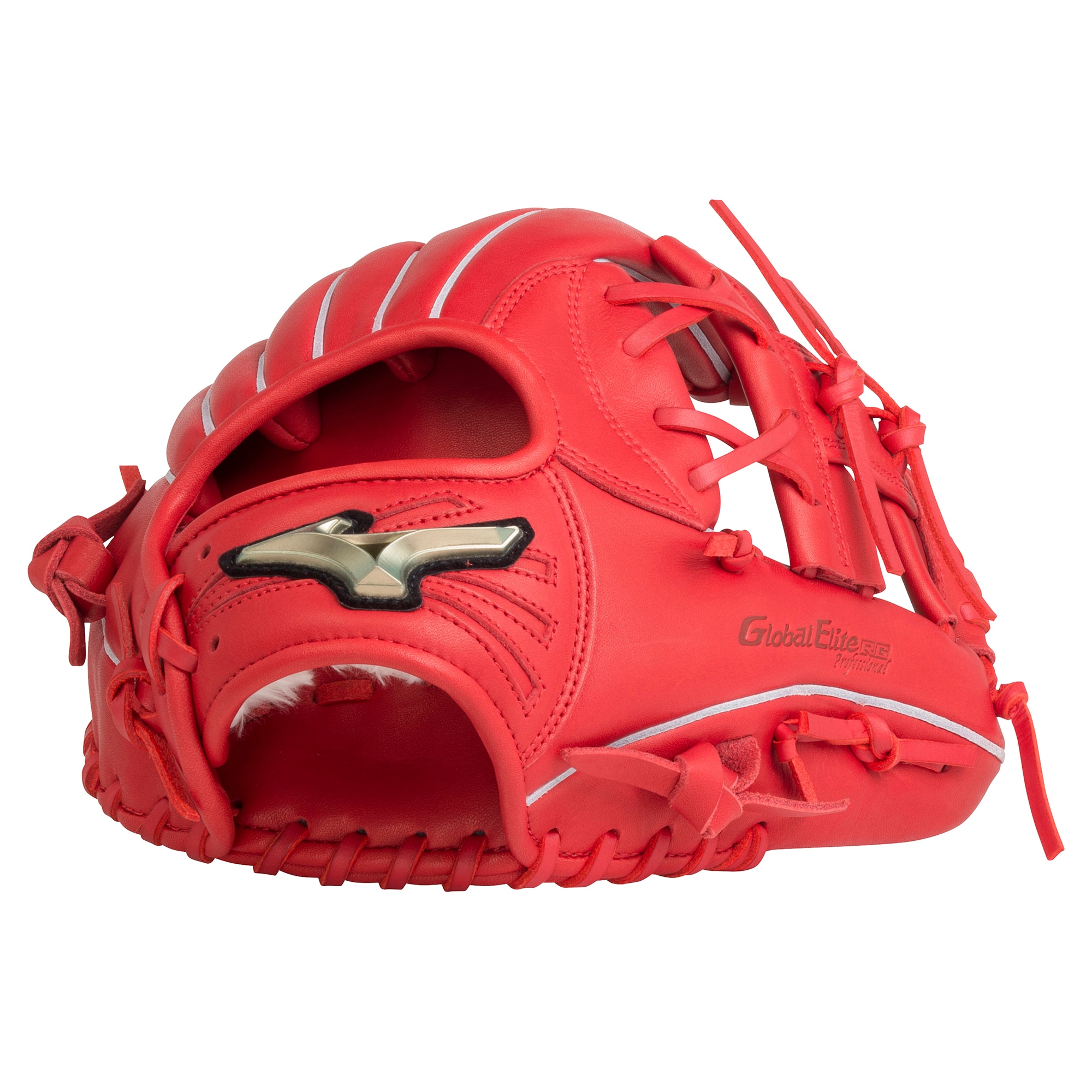 ミズノ(MIZUNO)グローバルエリート 少年軟式用グラブ 限定モデル RG ブランドアンバサダーセレクション 品番:1AJGY27233 カラー:70(ラディッシュ) 素材:マデレンダーレザーRGI(天然皮革:牛革) サイズ:M ポジション:内野手用(坂本勇人モデル) 左右:右投用/左投用 付属品:専用グラブ袋付(フィリピン製) 詳細:平裏にはGlobal Elite刺繍入り、Droll構造 原産国:フィリピン製