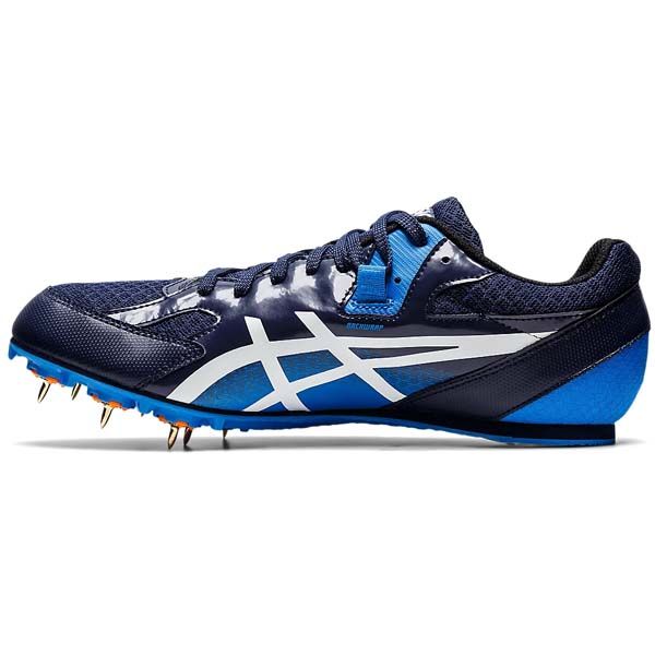 アシックス(asics) 陸上スパイク EFFORT 13 品番:1093A167 カラー:PEACOAT/WHITE(400) サイズ:21.0~29.0cm 素材 アッパー:合成繊維/人工皮革 アウターソール:合成底/ゴム底 スパイク:金属製(鉄)=アンツーカー用 12mm:取替式 ラスト(足型):スタンダード 推奨種目:トラック全般(100m~1500m/ハードル/走幅跳/三段跳/棒高跳) トラック:オールウェザー/土トラック兼用 生産国:ベトナム