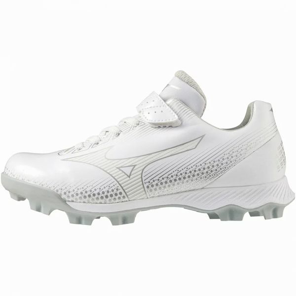 ミズノ(MIZUNO) 野球 ジュニア ポイントスパイク ウエーブライトレボJr 品番:11GP222201 カラー:01:ホワイト×ホワイト サイズ:18.0、19.0、20.0、21.0~24.0cm 素材 甲材:人工皮革 底材:合成底 質量 約185g(21.0cm片方) 足幅:3E相当 機能・特徴 GCLインソール 取り外し可 ソール特徴 ゴム アナトミカルラスト カンボジア製