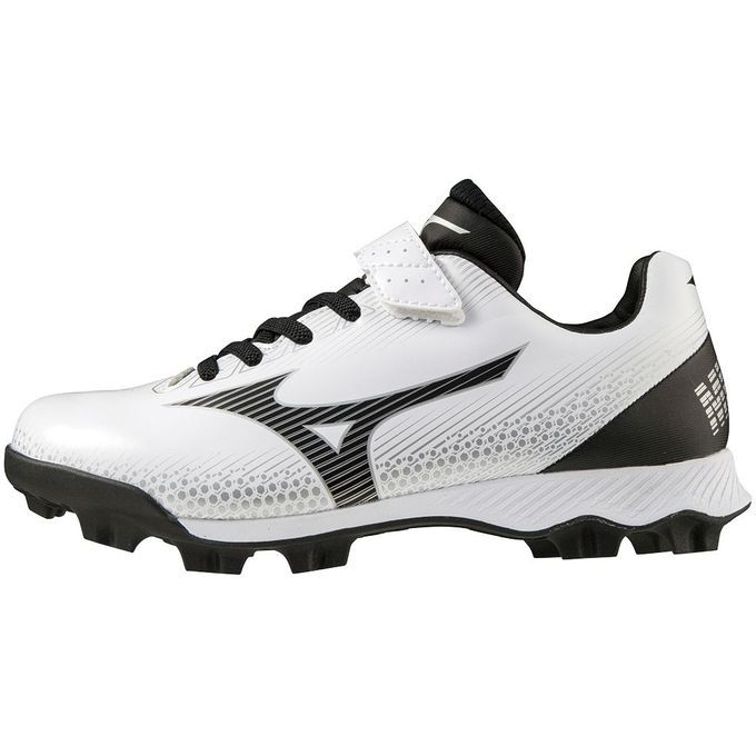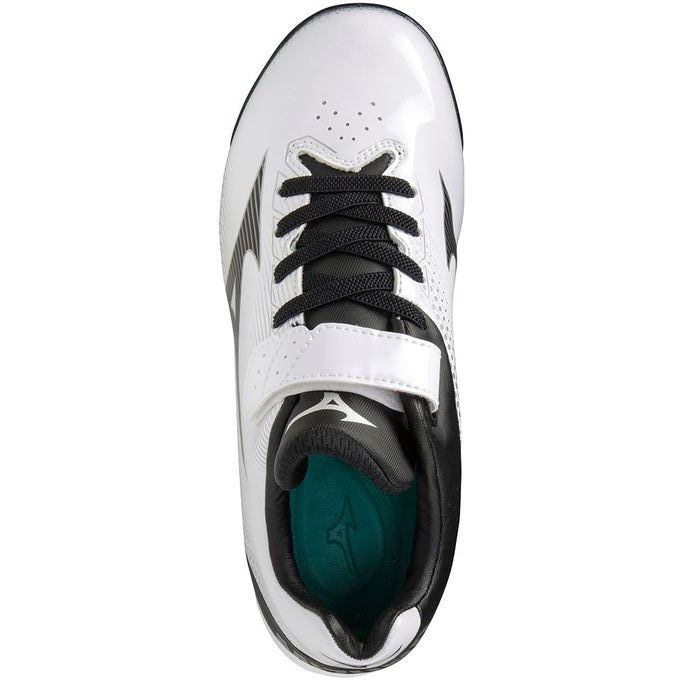 ミズノ(MIZUNO) 野球 ジュニア ポイントスパイク ウエーブライトレボJr 品番:11GP222290 カラー:90:ホワイト×ブラック サイズ:18.0、19.0、20.0、21.0~24.0cm 素材 甲材:人工皮革 底材:合成底 質量 約185g(21.0cm片方) 足幅:3E相当 機能・特徴 GCLインソール 取り外し可 ソール特徴 ゴム アナトミカルラスト カンボジア製