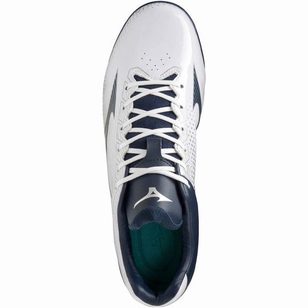 ミズノ(MIZUNO) 野球 ポイントスパイク ウエーブライトレボ 品番:11GP222114 カラー:14:ホワイト×ネイビー サイズ:23.0~29.0、30.0cm 素材 甲材:人工皮革 底材:合成底 質量:約270g(27.0cm片方) 足幅:3E相当 機能・特徴 GCLインソール 取り外し可 ソール特徴 ゴム アナトミカルラスト カンボジア製