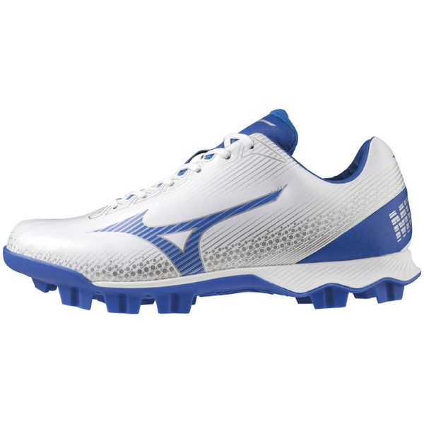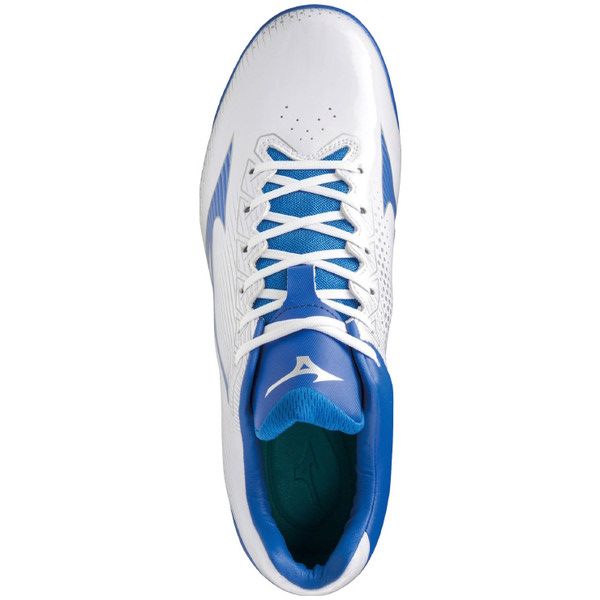 ミズノ(MIZUNO) 野球 ポイントスパイク ウエーブライトレボ 品番:11GP222127 カラー:27:ホワイト×ブルー サイズ:23.0~28.0cm 素材 甲材:人工皮革 底材:合成底 質量:約270g(27.0cm片方) 足幅:3E相当 機能・特徴 GCLインソール 取り外し可 ソール特徴 ゴム アナトミカルラスト カンボジア製
