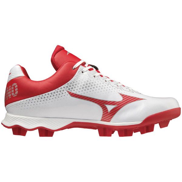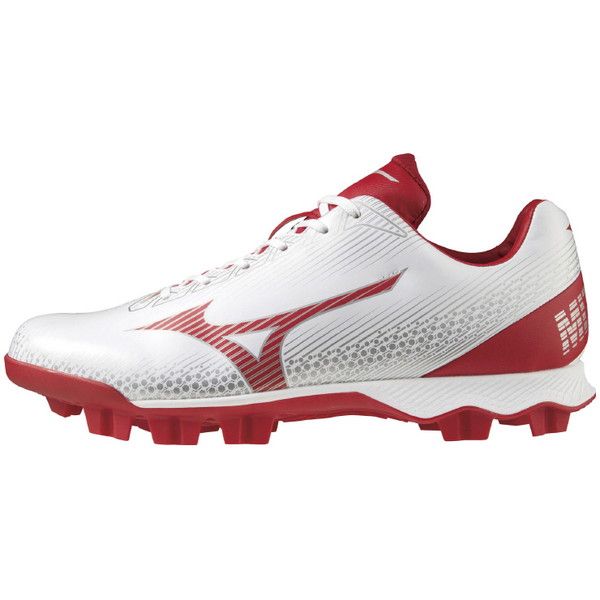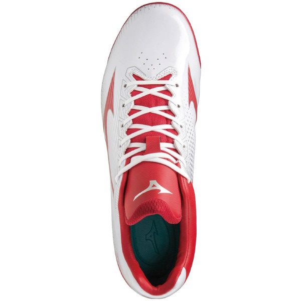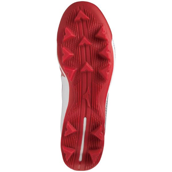 ミズノ(MIZUNO) 野球 ポイントスパイク ウエーブライトレボ 品番:11GP222162 カラー:62:ホワイト×レッド サイズ:23.0~29.0、30.0cm 素材 甲材:人工皮革 底材:合成底 質量:約270g(27.0cm片方) 足幅:3E相当 機能・特徴 GCLインソール 取り外し可 ソール特徴 ゴム アナトミカルラスト カンボジア製