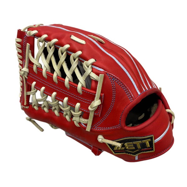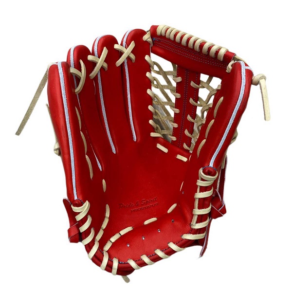 きめ細かくしっとりとした上質なヨーロッパ産キップレザーに表平裏に当て革補強を施し捕球面の張りとしっかり感にこだわったプロステイタスSEシリーズ。刺繍風ウェルダーラベル、バンド部ハミダシ、ブラウン色ムートンなどSEシリーズ特別仕様モデル。人気のTベルトウェッブ搭載やや小ぶりモデル。