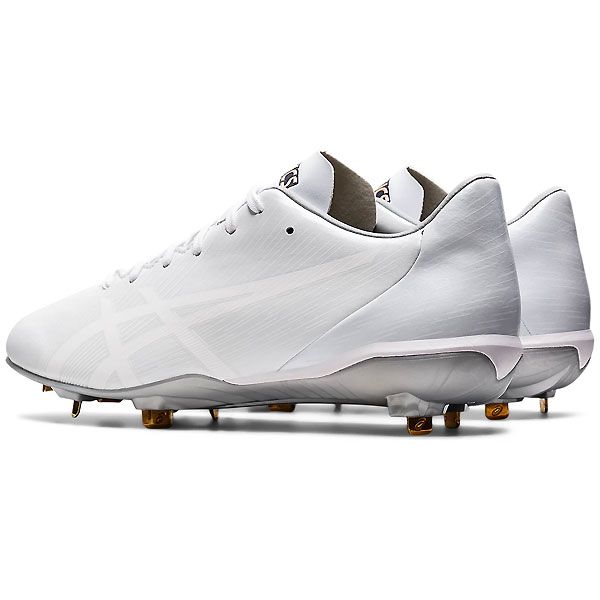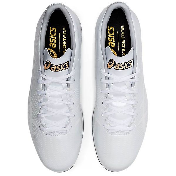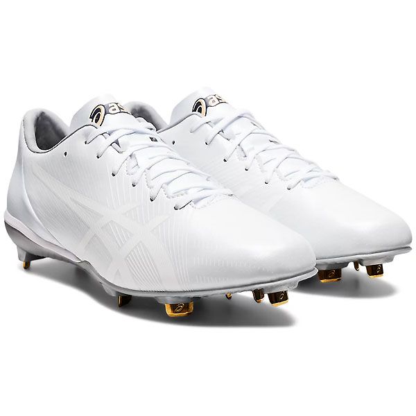 アシックス(asics) ゴールドステージ 埋め込み金具スパイク i-PRO MA2 品番:1121A062 カラー:ホワイト×ホワイト(110) サイズ:23.0~30.0cm 素材 アッパー:人工皮革 アウトソール:合成底 スパイク:金属製・固定式 足幅:STANDARD 機能・特徴 新ブレード形状 くの字型の現行金具から、形状を変更。よりグラウンドをとらえやすいため蹴り出し時に有効に働く。 軽量ソール 金具の土台部分の形状を見直すことで、より少ない樹脂量で金具を埋め込むことができ、ソールの軽量化を実現。 センタートラスバー かかとから小指側に伸びた高硬度バーにより、着地後の重心位置を素早く前足に移行させることで接地時間を短縮。 リフレクティングバー 前足部に配置したバーで前足部の硬度を高めており、蹴り上げのパワーを反発力に変える。 3D -プリントサポート スタート(蹴り出し)時に負荷のかかりやすい前足部外側をサポートする立体プリントを配置。蹴り出しのパワーロスを軽減。 原産国:ベトナム